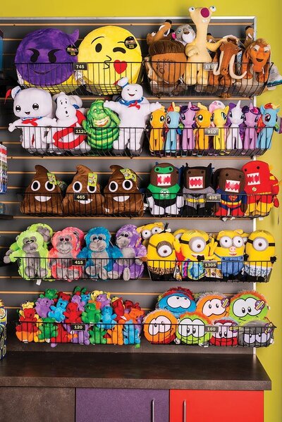 Getting the right prizes is only half the battle. How you merchandise them determines how your guests perceive the value of your prizes, and can even dictate their incentive to play games (to win those prizes). That’s a lot of $$$ riding on merchandising! Typically items in the Saver range are merchandised in display cases, on shelves or in baskets. Here are our merchandising best-practices for prizes within the Saver Range: