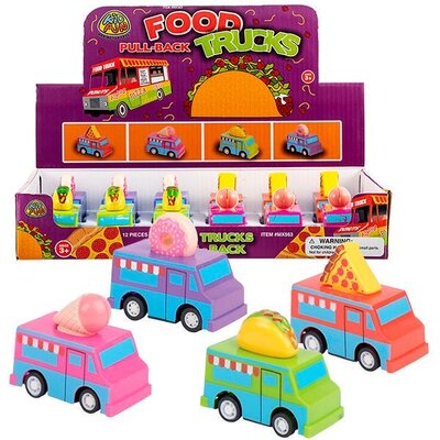 These little food trucks are a modern take on the classic pull-back racer toys. (SKU #322306)